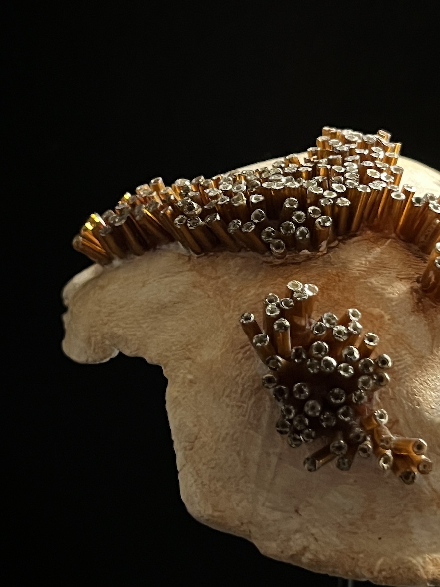Os de mer (G)Perles de verre, céramique cellulosique, bois, fil d’argent lurex - 41 x 37 cm - 2024
